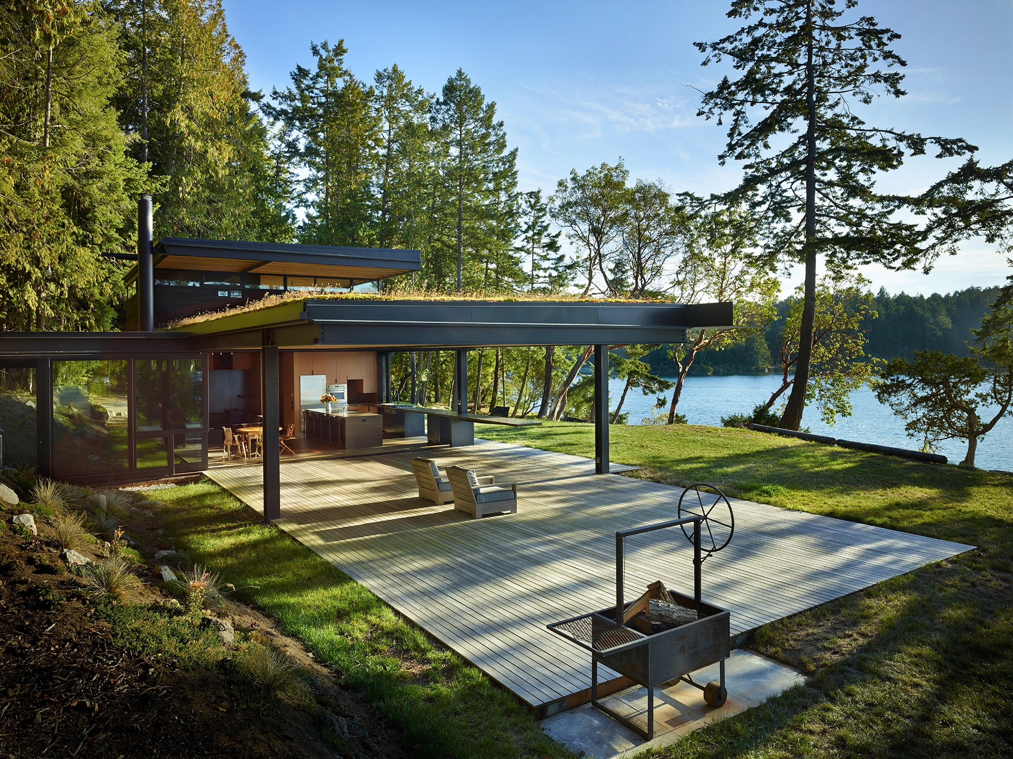 A secluded family retreat located in the San Juan islands of Washington State. This is the modern expression of a cabin — built with an engineered steel frame and walls of glass.
